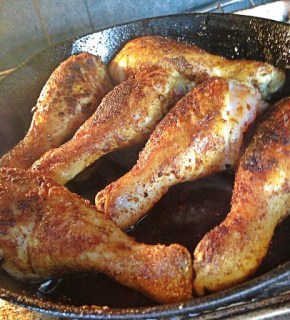 Heat the oil in a cast iron skillet, add the chicken legs and brown without disturbing 3-4 minutes on each side. Transfer the skillet with the browned legs to the oven.