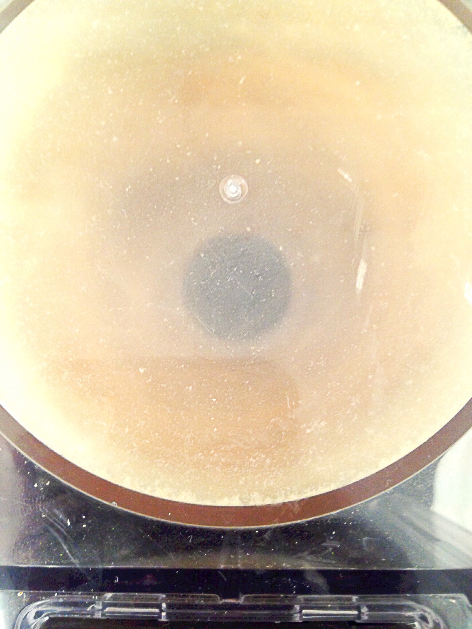 At the 3 hour mark, carefully remove the oil from the water–remembering that even at 131F-165F water is very hot.