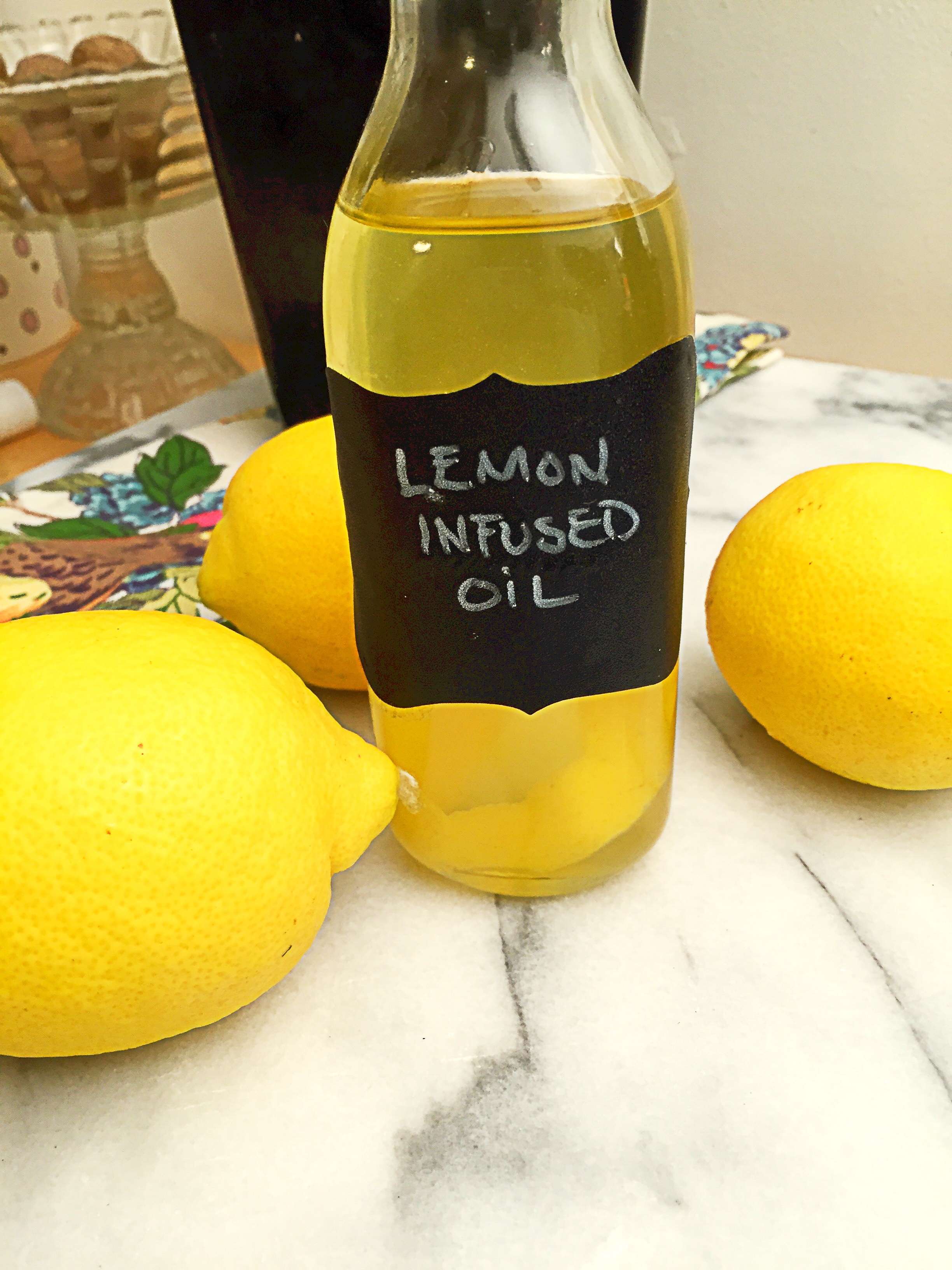 The lemon oil is ready to use. There are so many uses for this oil.  Drizzle a little on avocado toast, or on roast chicken–the uses are endless and always delicious!