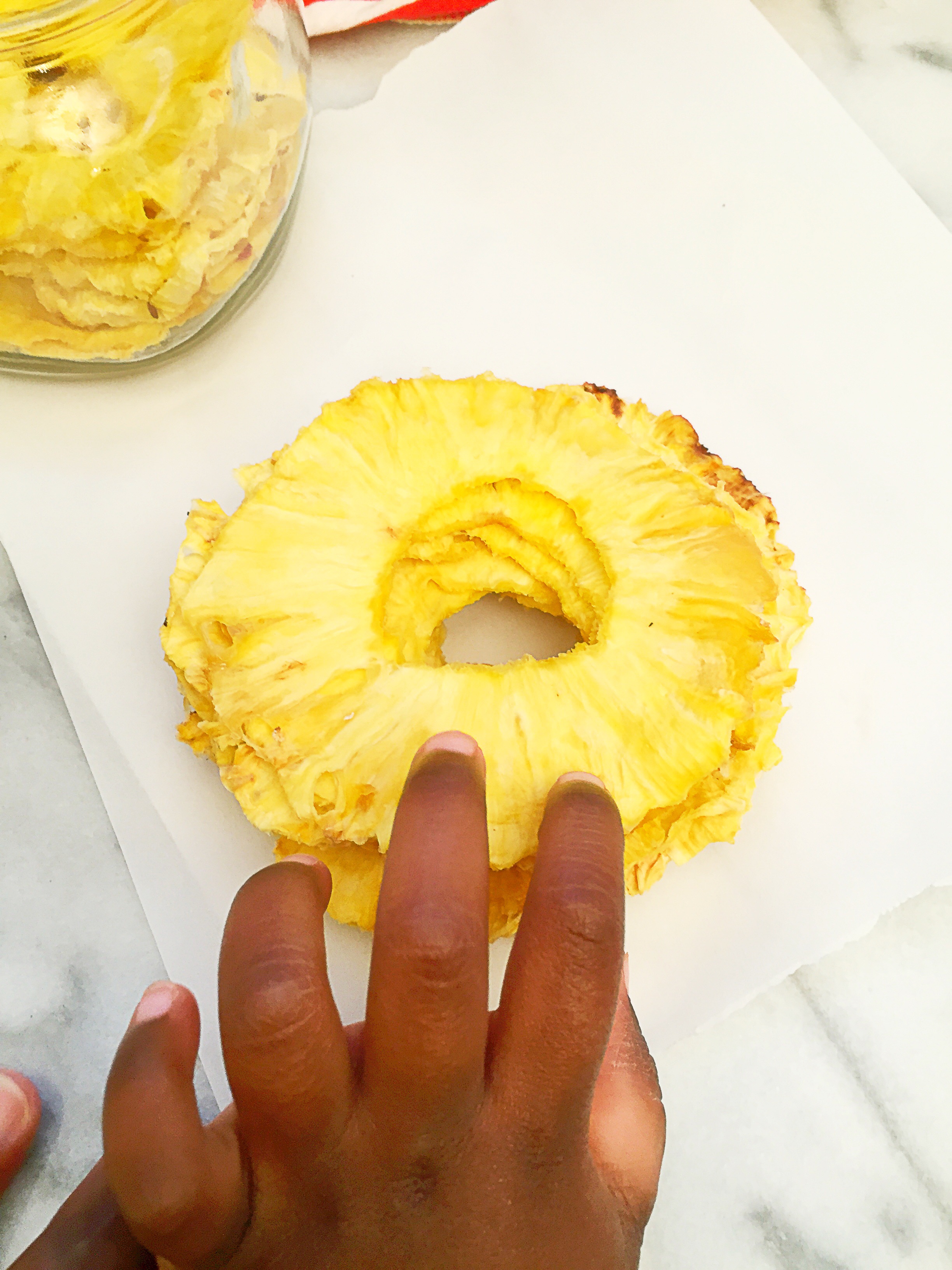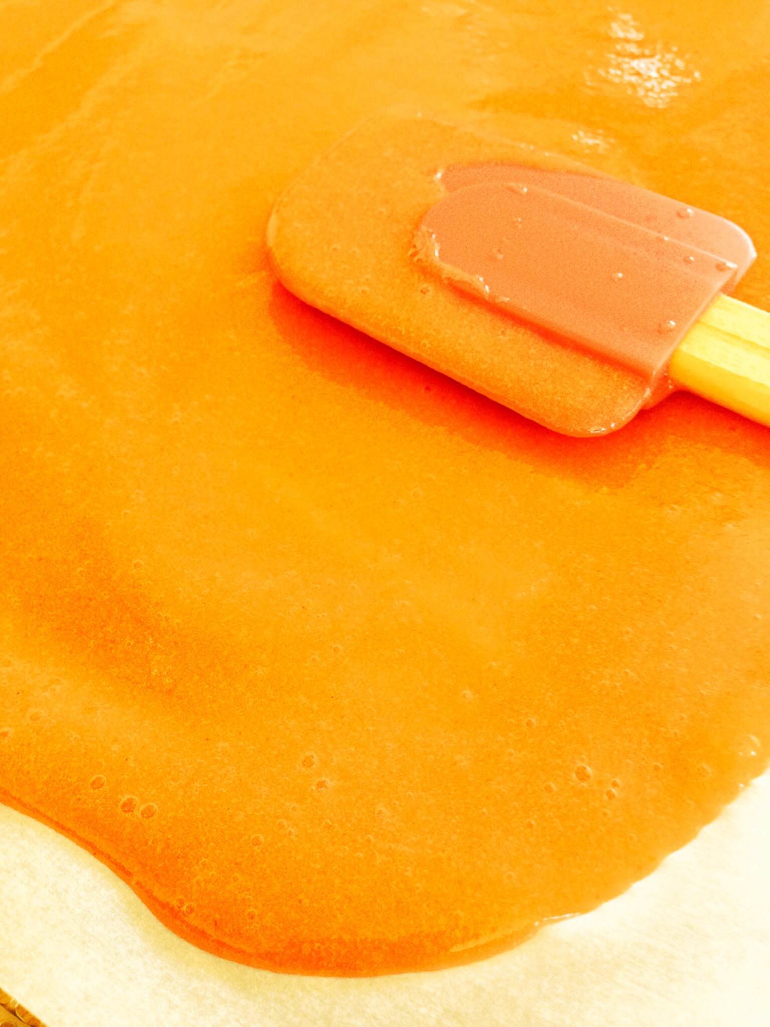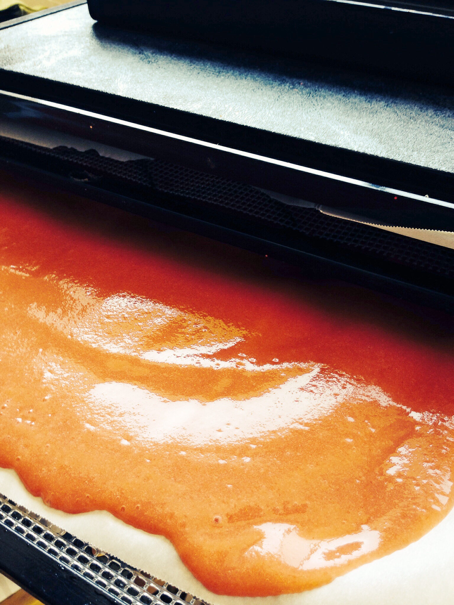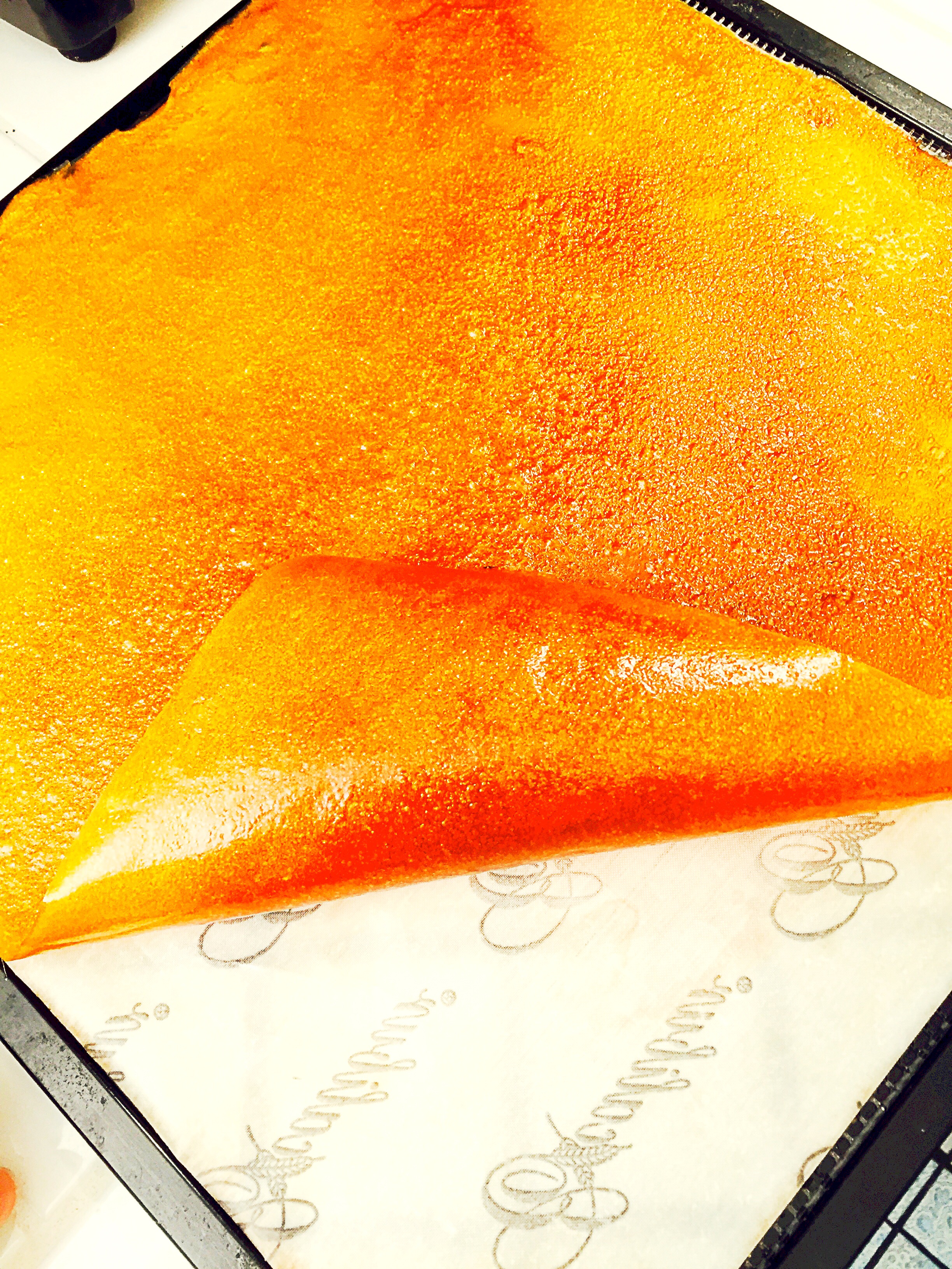 If you don’t have a dehydrator–get one they are worth the money and the counter space–you can do this in an oven, set the oven to the lowest setting, and place the watermelon on a parchment lined cookie sheet. My oven’s lowest setting is 250F. If you are using your oven on a setting this high, keep in mind that the watermelon will dehydrate at a faster rate, so keep an eye on it, at the 4-5 hour mark, your watermelon will likely be done.