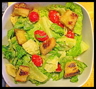 I LOVE Caesar salad. Besides Greek salad, Caesar salad is my go to salad of choice. I love everything about Caesar salad, the romaine, the croutons, the tangy dressing, Caesar salad is just yummy! Although Caesar salad has a creamy dressing, it never feels heavy. I don’t buy salad dressings, I always make my own. Although store bought is great in a time pinch, most store bought salad dressings have so many additives, that I tend to just skip buying them all together. I don’t want to even imagine what most store bought Caesar salad dressings have in them! I have made Caesar salad dressing at home with with a shortcut like Vegenaise, which is a vegan alternative to mayo. I’ve never been a fan of mayo, so if I need anything that calls for mayo, I just use the vegan alternative. This particular recipe uses 2 raw egg yolks, so your essentially making your own mayonnaise. Since we are using raw egg yolks, make sure you use pasteurized egg yolks. I wouldn’t want anyone to get sick. If you’re not a bread person skip the croutons, but these are so good you should definitely try them. Use your favorite artisan bread. I picked up a fresh loaf of sourdough at a local bakery, but a ciabatta or any other fresh bread will work.
