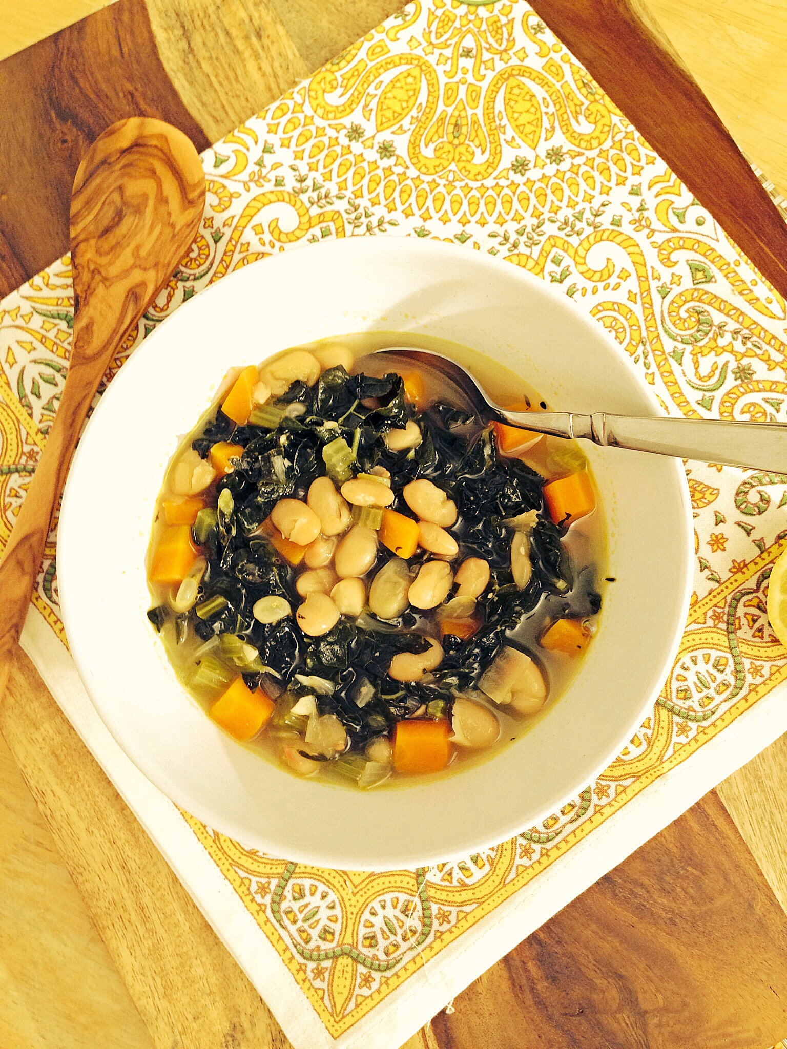 Add in the wine, vegetable stock and beans, bring to a boil and cook until greens are tender about 15 minutes. Add in lemon juice, adjust the seasoning with sea salt and black pepper, serve and enjoy!