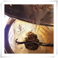Once it looks dry, put a small amount into a sieve, and push it through with a wooden spoon, continue doing this until you have sifted all the sugar. Or you could just put this in the blender and save yourself the time. I prefer to sift, I sift even after I blend, just to make sure that all of the crystals are uniform.