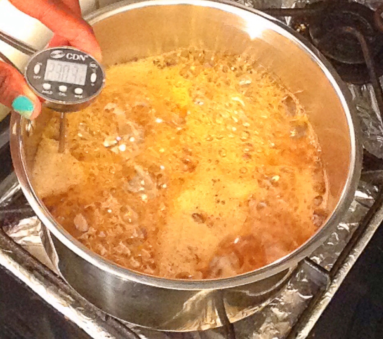 The maple syrup will start to change color and texture as it cools, it will also begin to dry out–you want this, keep going until it is completely dry.
