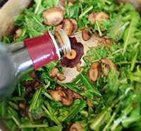 After the mushrooms have taken on some color add in the dandelion greens.