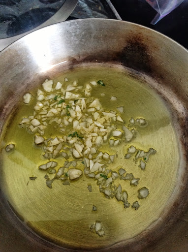 Warm the olive oil and garlic in a sauté pan: