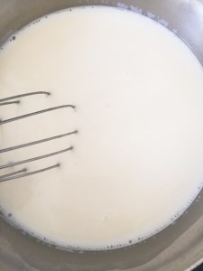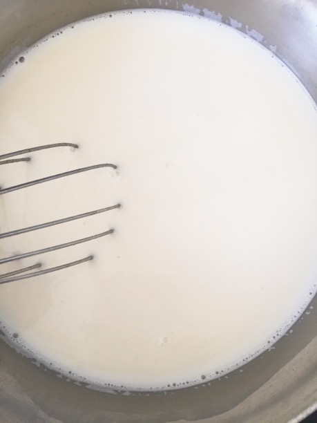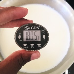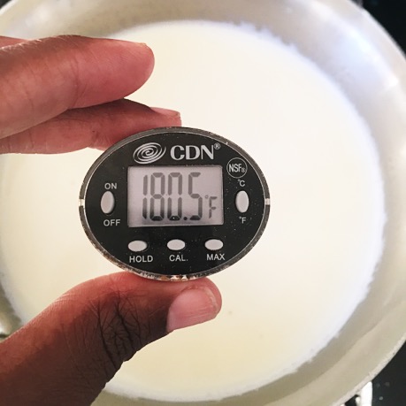 Heat the milk to 180F whisking to prevent the milk from scorching.
