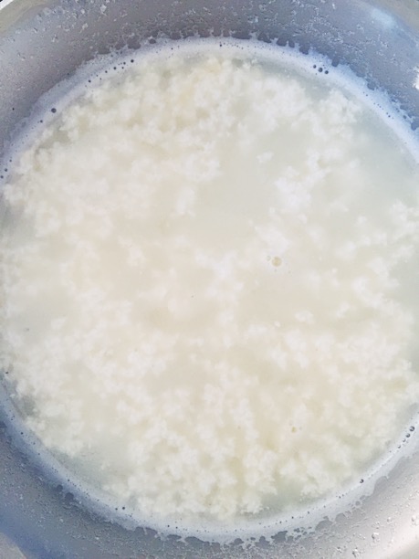 Allow the curds to continue to separate, let the mixture sit in the pot uncovered for 15-20 minutes.