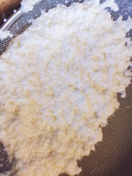 Or you can strain, then squeeze out excess whey, add salt, form into a ball, and press into a firmer queso,